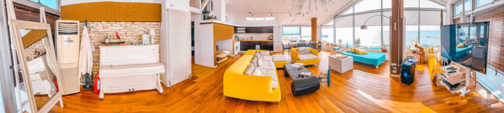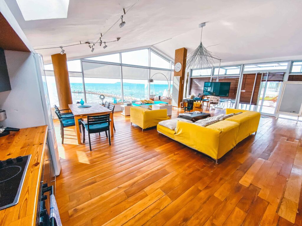 • z okien salonu i z tarasu widok na morze i plażę