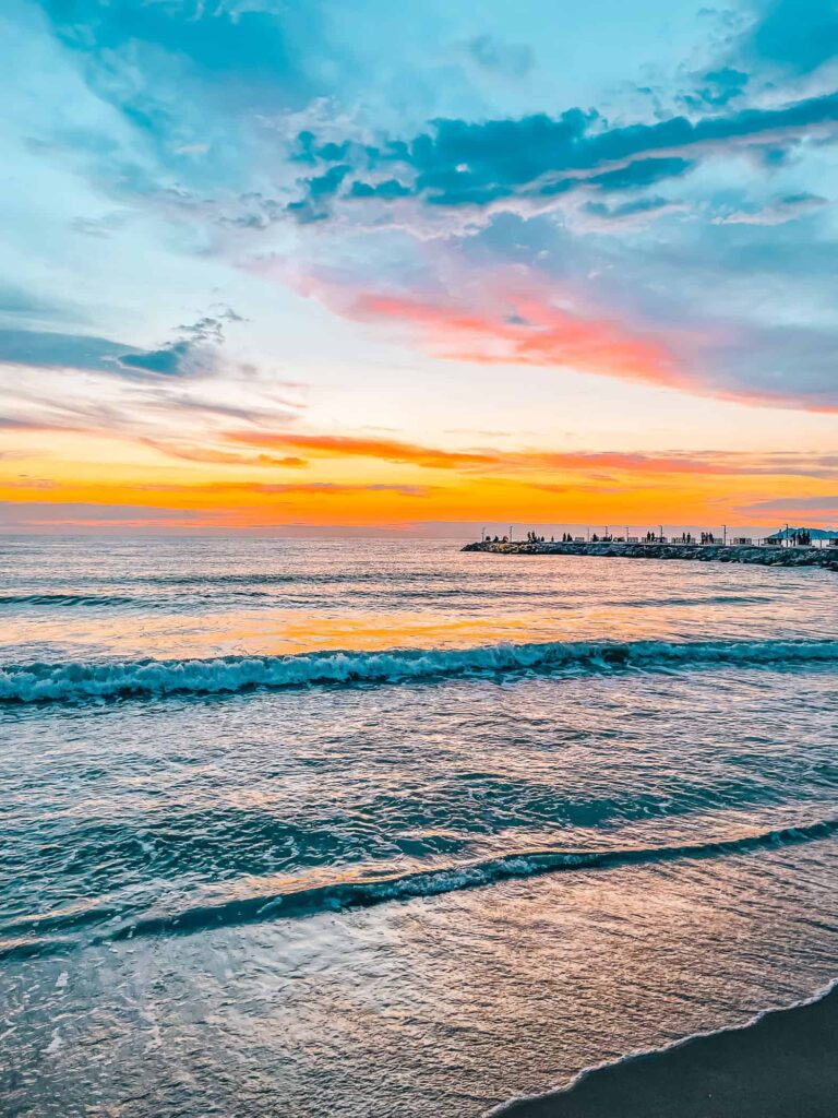 Nie jestem pewna, ale wydaje mi się, że gdy byliśmy tu cztery lata temu, plaża była szersza. Nawet jeżeli nie, to z pewnością leżaki i parasole stały w większych odstępach. Teraz wykorzystany jest każdy milimetr piasku, co powoduje, że dla mnie na plaży było zdecydowanie zbyt tłoczno i wolę opalać się na tarasie, ale to moja preferencja, Mąż i synowie korzystają z przysługujących nam miejsc na plaży.