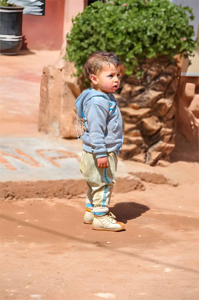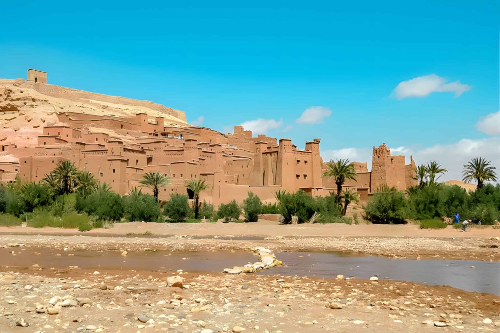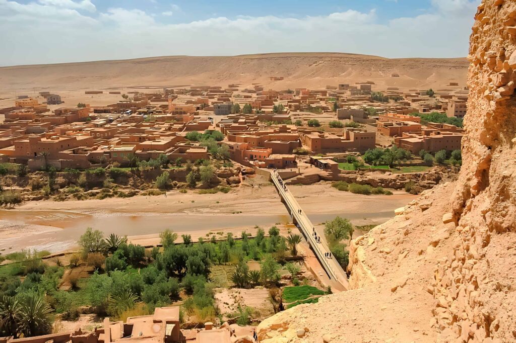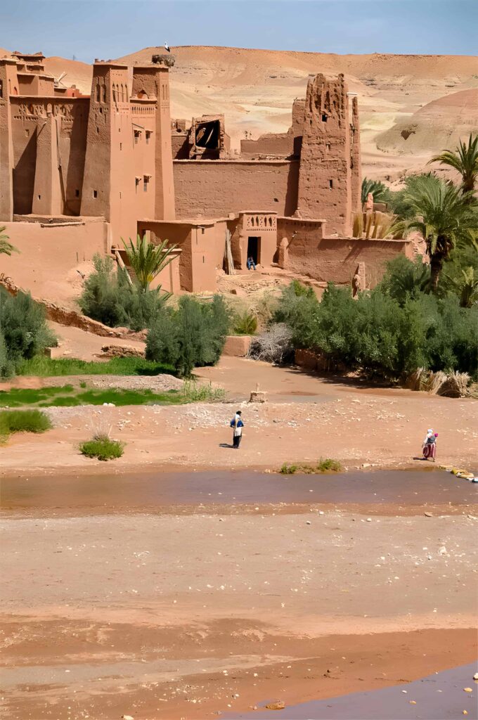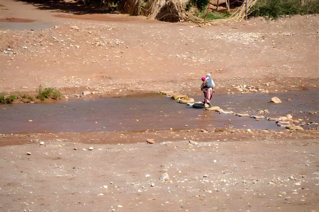 Położona jest nad brzegiem Wadi Mellah. W korycie podobno zazwyczaj, nie ma wody, ale o tej porze roku była. Przekraczaliśmy ją idąc po kamieniach i workach z pisakiem. Miała to być swego rodzaju atrakcja, ale przede wszystkim sposobność do zarobienia kilku dirham przez dzieci, które brodząc w wodzie po kostki, podają rękę, a później oczekują zapłaty za okazaną pomoc.