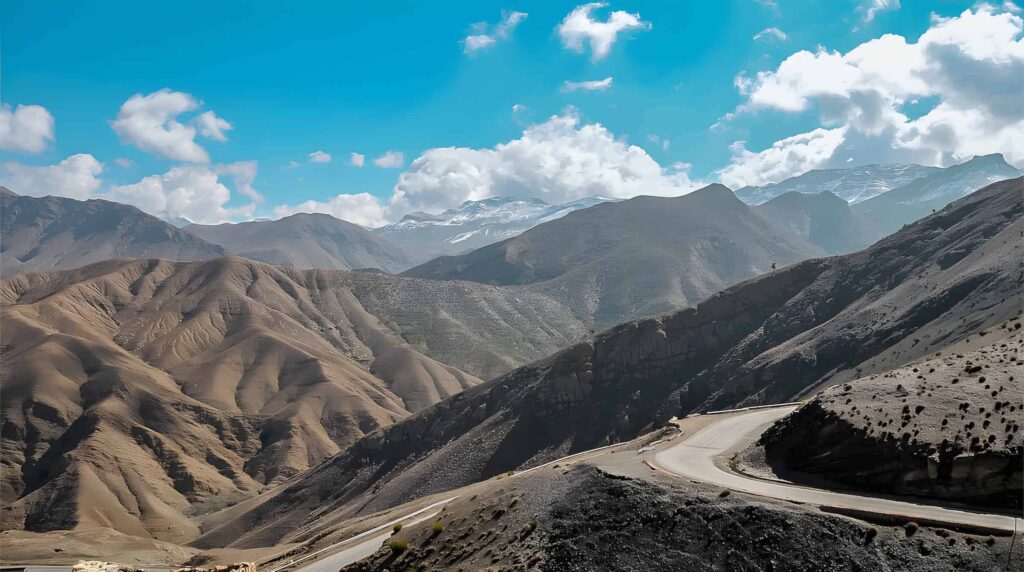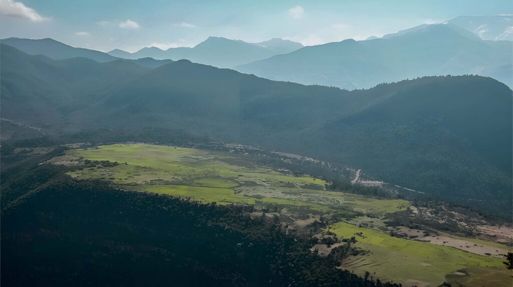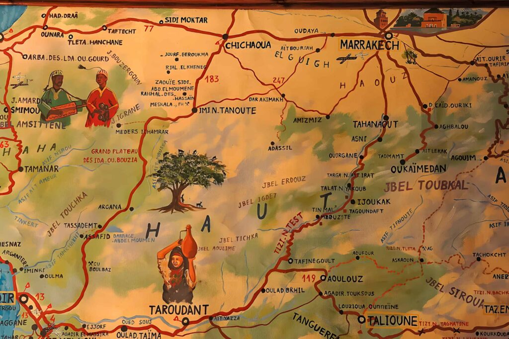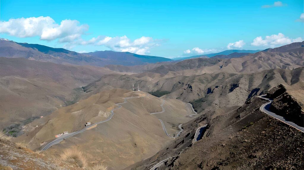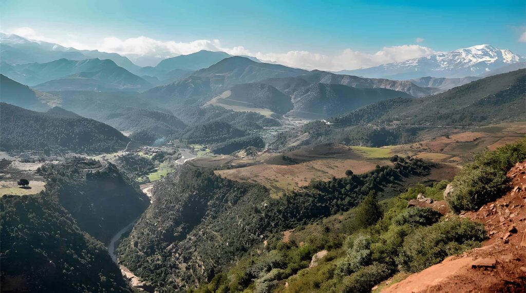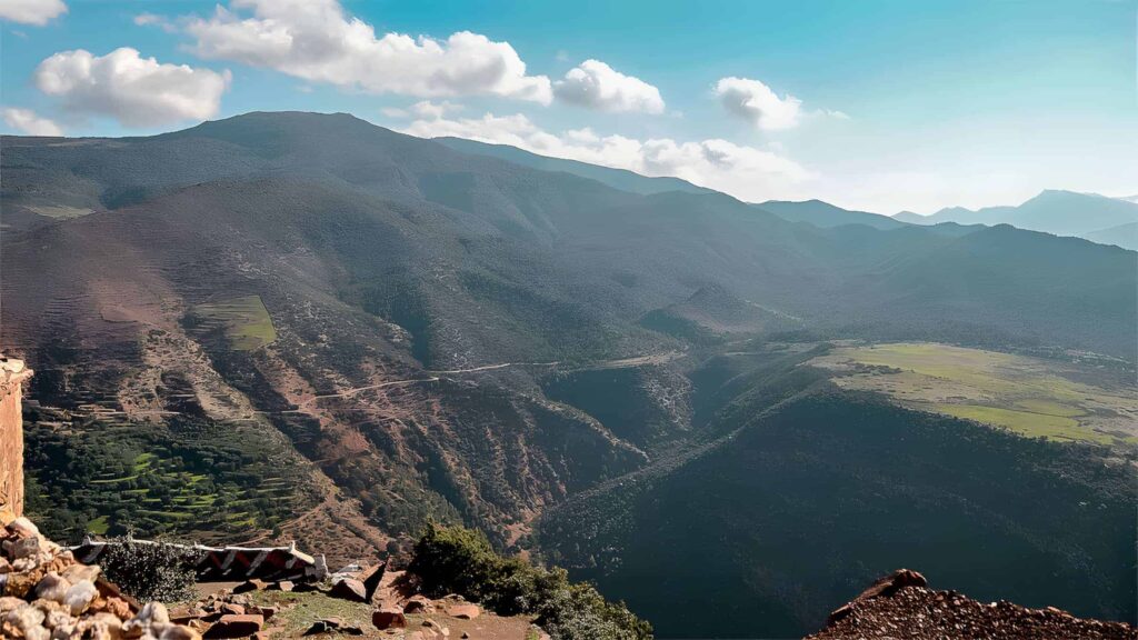 Panuje tu klimat podzwrotnikowy. Jałowe wzgórza przecinają malownicze wąwozy i koryta wadi*. Pejzaż kamiennej pustyni urozmaicają zielone oazy – aż po skraj Sahary. Rdzenną ludność Gór Atlas stanowią Berberowie.
