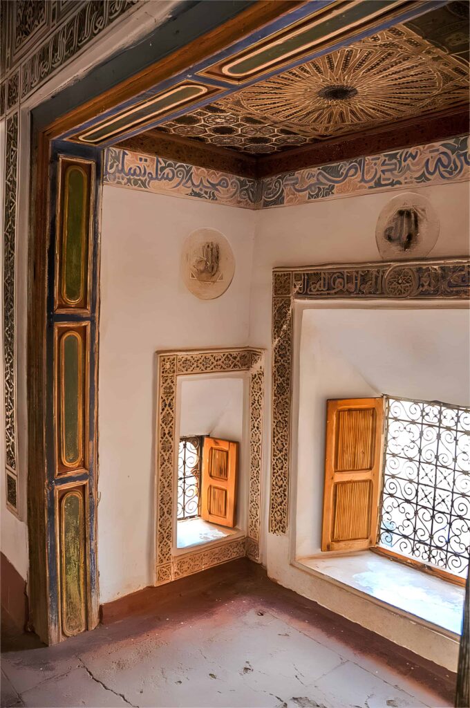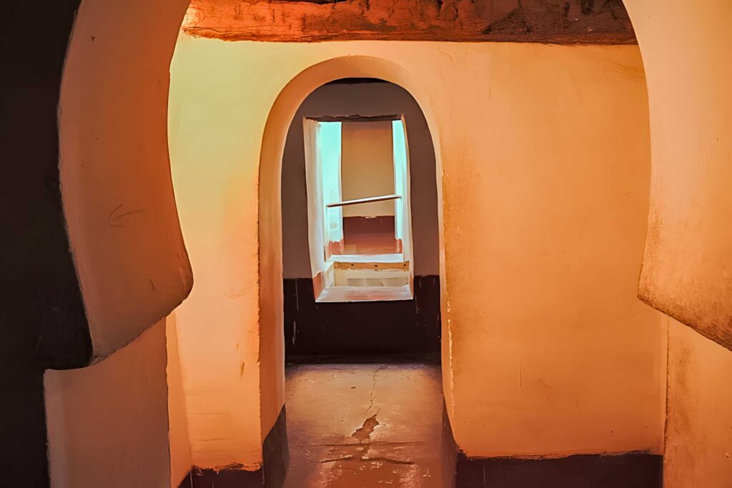 Fasada kasby podobna jest do innych tego typu budowli, zdobią ją otwory oraz geometryczne, wklęsłe wzory. W środku pomieszczenia zaskakują różnorodnością. Płaszczyzna podłóg i sufitów znajduje się na różnych wysokościach – ma się wrażenie jakby się chodziło po labiryncie. Sale zdobią wielobarwne sufity: drewniane oraz plecione z sitowia. Arkadowe przejścia bez drzwi, pozostałości pięknych sztukaterii z motywami kwiatowymi i geometrycznymi, mozaiki.