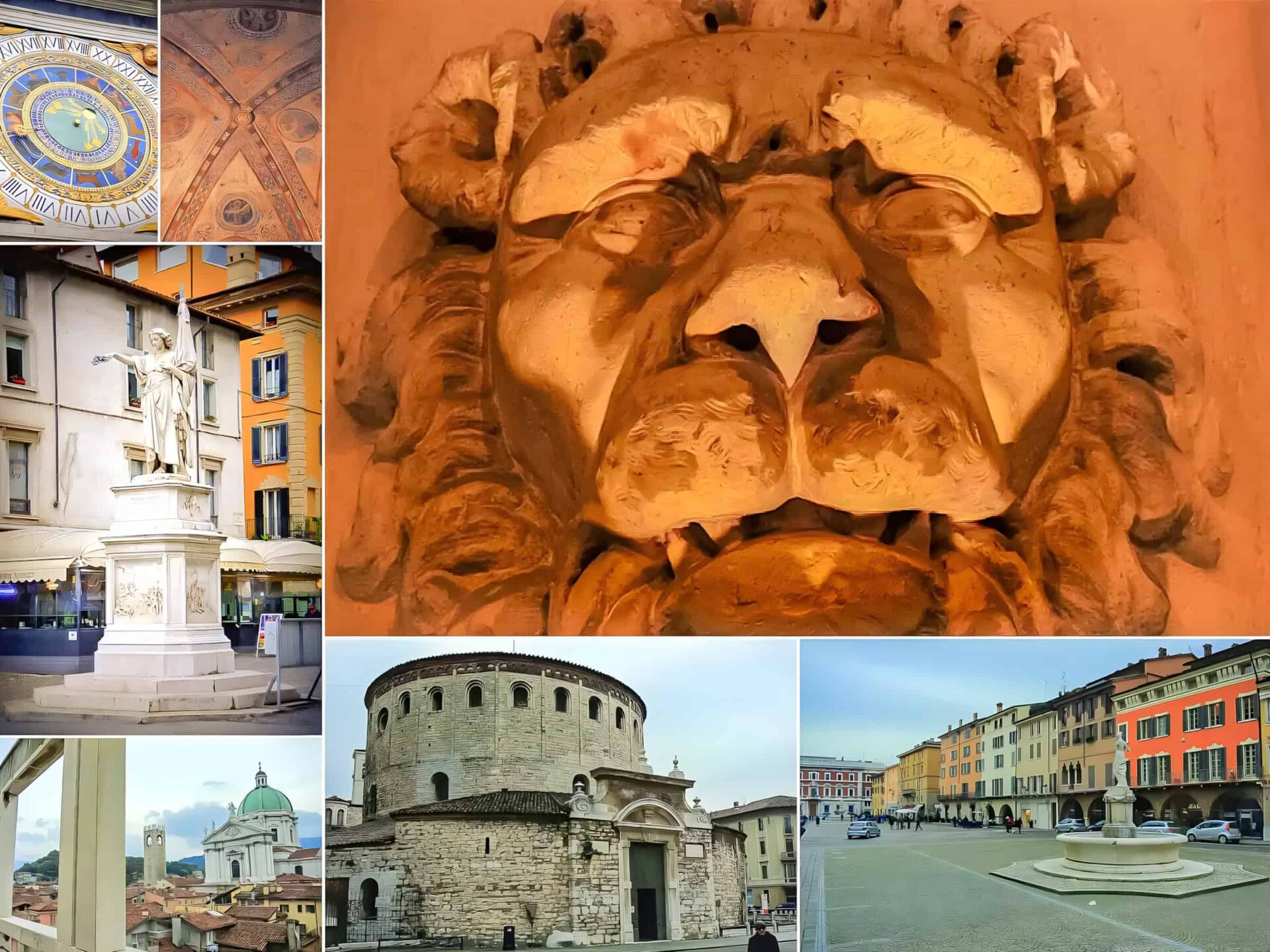 W centrum miasta warto zobaczyć dwa duże place: Piazza Della Logiia oraz Piazza Della Vittoria. Na Piazza Paolo VI znajdują się najważniejsze obiekty kultury w mieście, między innymi rzymska katedra Duomo Vecchio di Rotunda oraz Duomo Nuovo – pełne dzieł włoskich artystów.