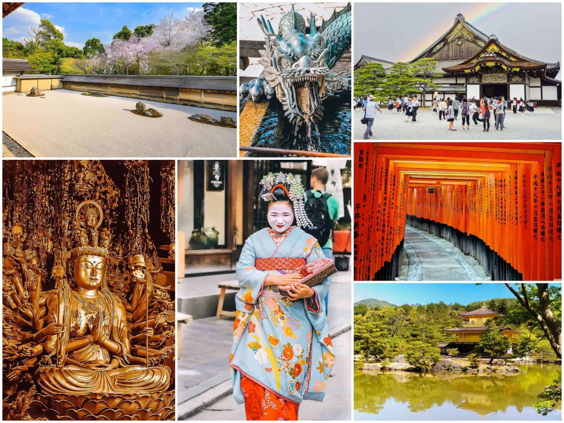 Podobno w Kioto znajduje się aż 1600 świątyń buddyjskich, 400 szinto, ale również dwie cesarskie wille, pałac cesarski, zamek, kilkadziesiąt muzeów, a do tego ogromna liczba sklepów oraz punktów pamiątkarsko-rzemieślniczych.