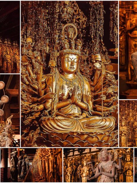 Tysiąc ręka Kannon i jej 1001 wcieleń oraz drapacze chmur w Tokio.