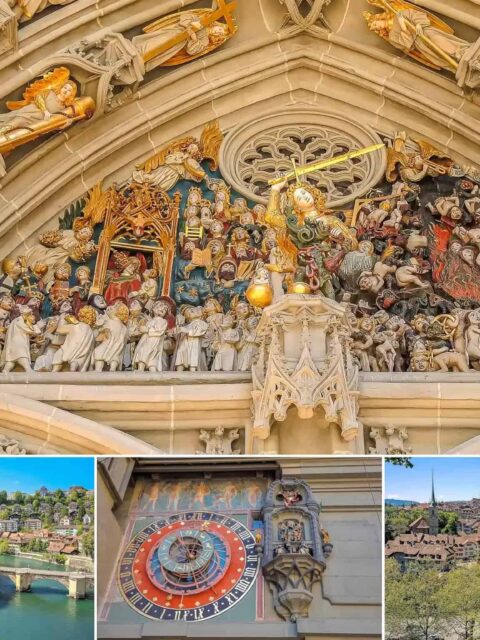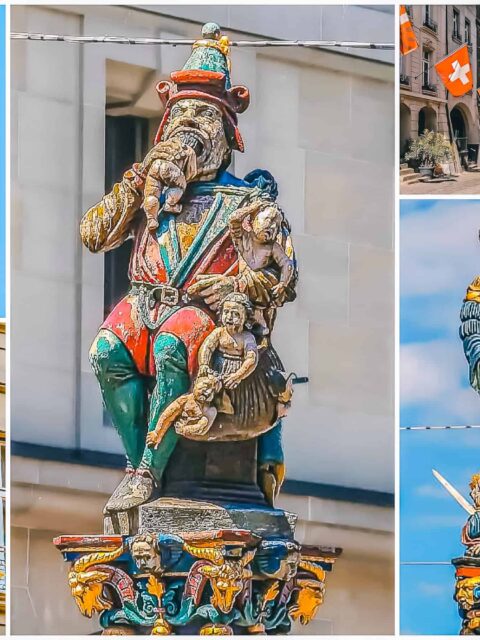 Kolorowe figury i fontanny Starego Miasta w Bernie.