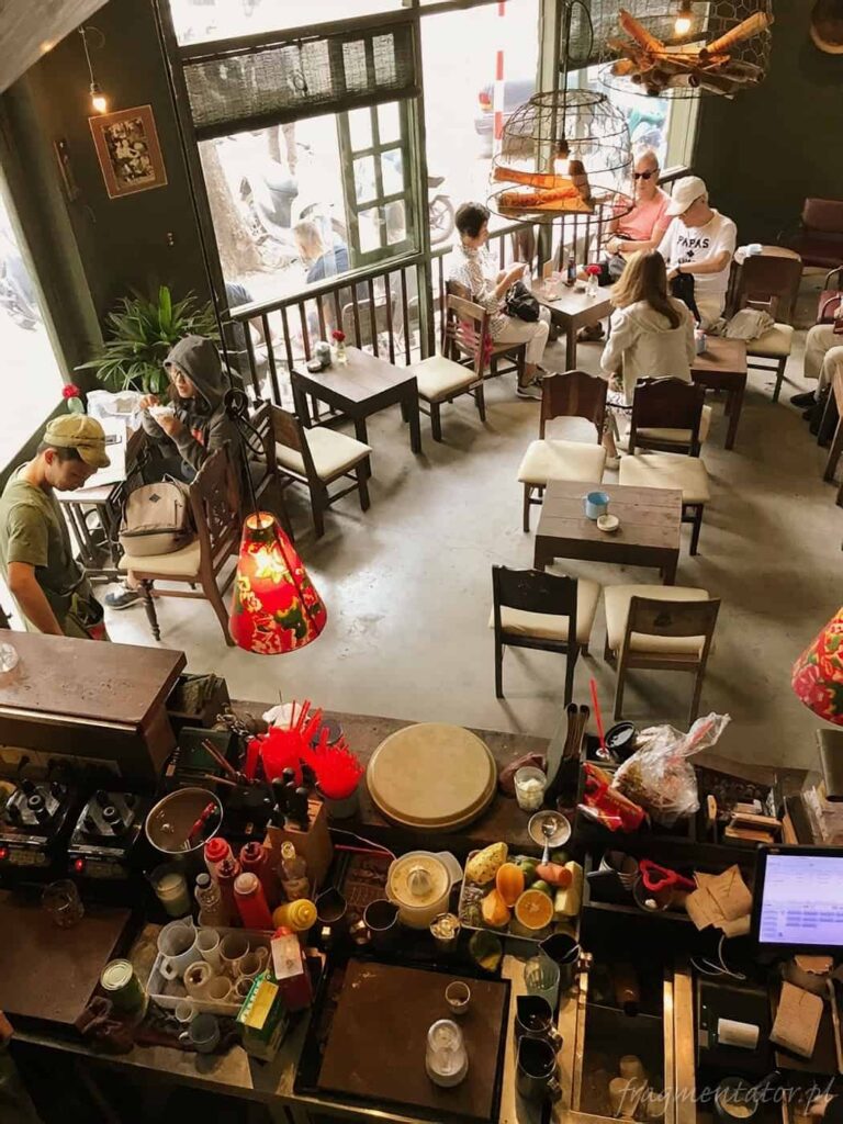 W Hanoi kawiarni Cong Caphe jest 20, a może już więcej. Wyróżnia je wojskowa zieleń elewacji. My w trakcie naszego krótkiego pobytu odkryliśmy 3 miejsca. Łączy je niesamowity klimat pomieszczeń, nawiązujący do lat 60. i 70. w tym również do wojny wietnamskiej i propagandy komunistycznej.