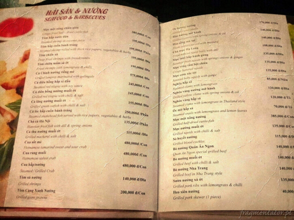 Wszystko czego tam próbowaliśmy bardzo nam smakowało. Jedynie wietnamskie desery okazały się nie być w naszym guście. Na mnie duże wrażenie zrobił wietnamski smażony naleśnik (z krewetkami i wieprzowiną). No i oczywiście odkrycie tego wyjazdu – Bun cha, czyli wieprzowina z grilla podawana z makaronem ryżowym, smażoną bułką z kraba, świeżymi ziołami i sosem, w którym to wszystko zanurzamy.
