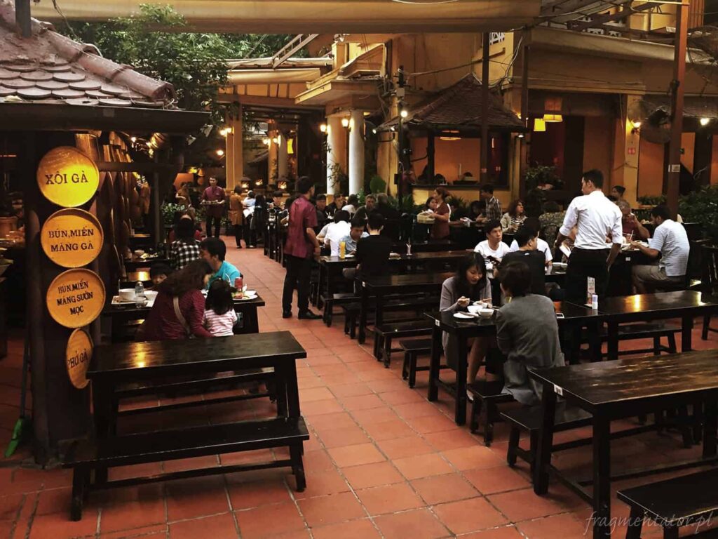 Quan An Ngon jest bardzo popularne nie tylko wśród turystów. Przychodzą tam również Wietnamczycy, często bardzo dużymi grupami. Dlatego w godzinach szczytu należy robić rezerwacje lub liczyć się z oczekiwaniem na stolik. Ale restauracja jest duża, obsługa liczna i całkiem sprawna, warto więc poczekać na wolne miejsce.