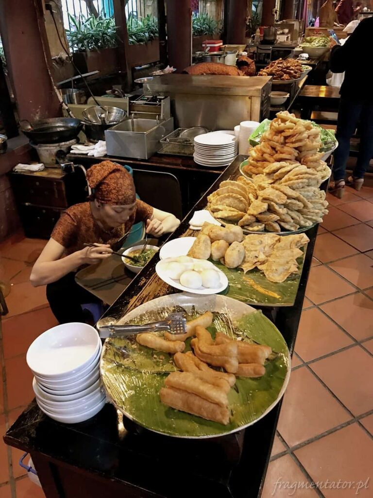 Restauracja, w której my jadaliśmy miała bardzo przyjemny klimat. Wokół dziedzińca zapełnionego stołami, stały stanowiska imitujące uliczne stragany, a każde specjalizowało się w konkretnej kuchni regionalnej. Można zobaczyć z czego i w jaki sposób przygotowywane jest jedzenie.