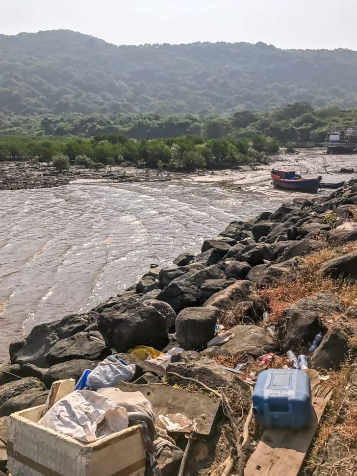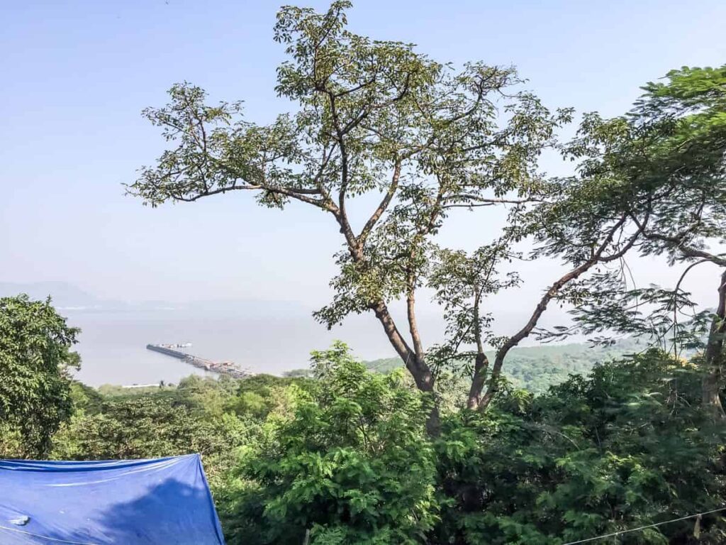 Poza zwiedzaniem grot, wyspa Elefanta oferuje także widok na panoramę Bombaju. Można wspiąć się na sam szczyt wzgórza, skąd przy dobrej widoczności rozciąga się widok na miasto. Nie wiem czy przy tamtejszym zanieczyszczeniu powietrza taka przejrzystość powietrza kiedykolwiek jest, ale zawsze warto spróbować. Nam nie specjalnie się poszczęściło.