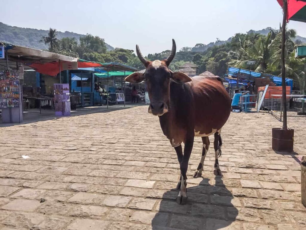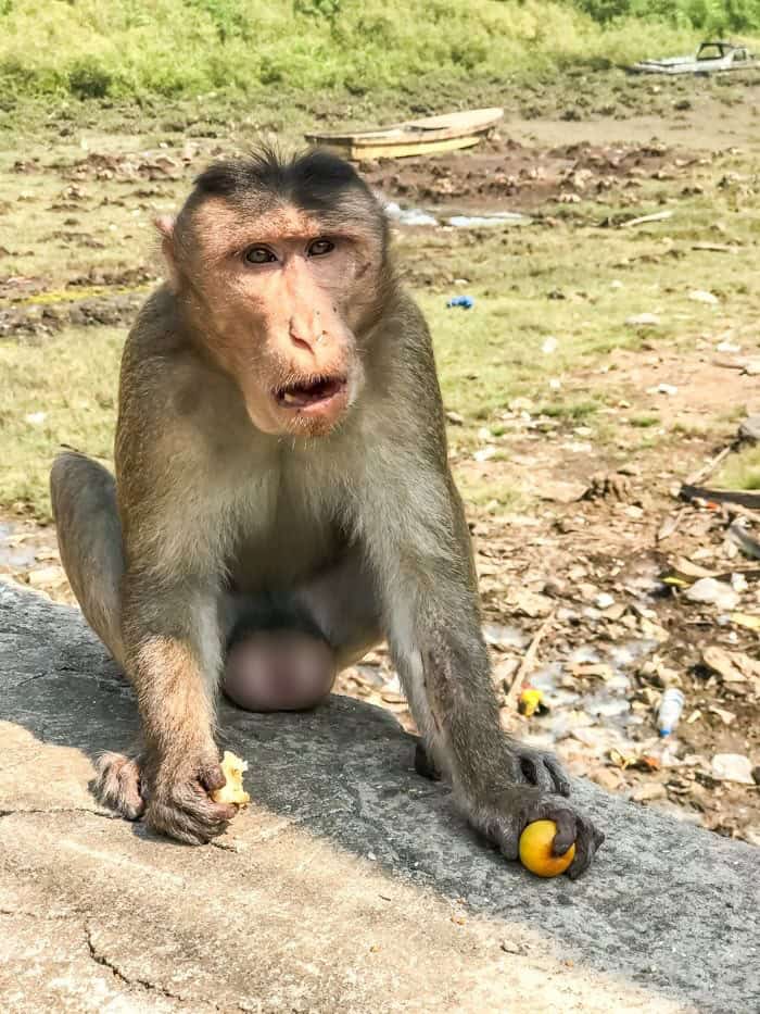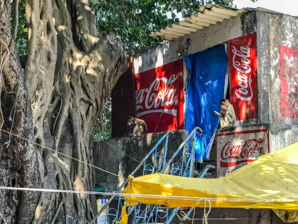 My mieliśmy to szczęście, że na Elefantę przypłynęliśmy pierwszym promem. Stoiska dopiero się rozkładały, więc przynajmniej w jedną stronę ścisk turystów oraz sprzedawców był mniejszy. Za to małpy panoszyły się wszędzie. I chociaż sprawiają wrażenie przyjaznych, warto na nie uważać. To nie maskotki. Potrafią zabierać rzeczy, zdarzały się przypadki pogryzień. Kozy i krowy wydały mi się łagodniejsze.