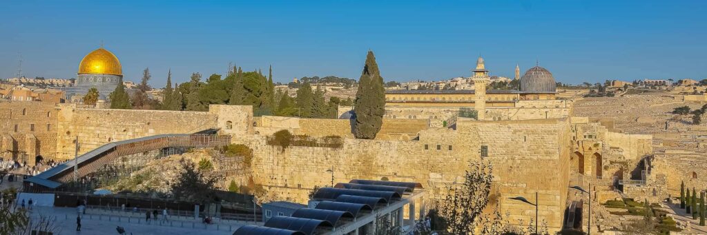 Obecnie wzrok przyciąga srebrzysty meczet Al-Aksa, a przede wszystkim złota Kopuła na Skale. Na prawo od wzgórza ciągną się labirynty wykopalisk archeologicznych.