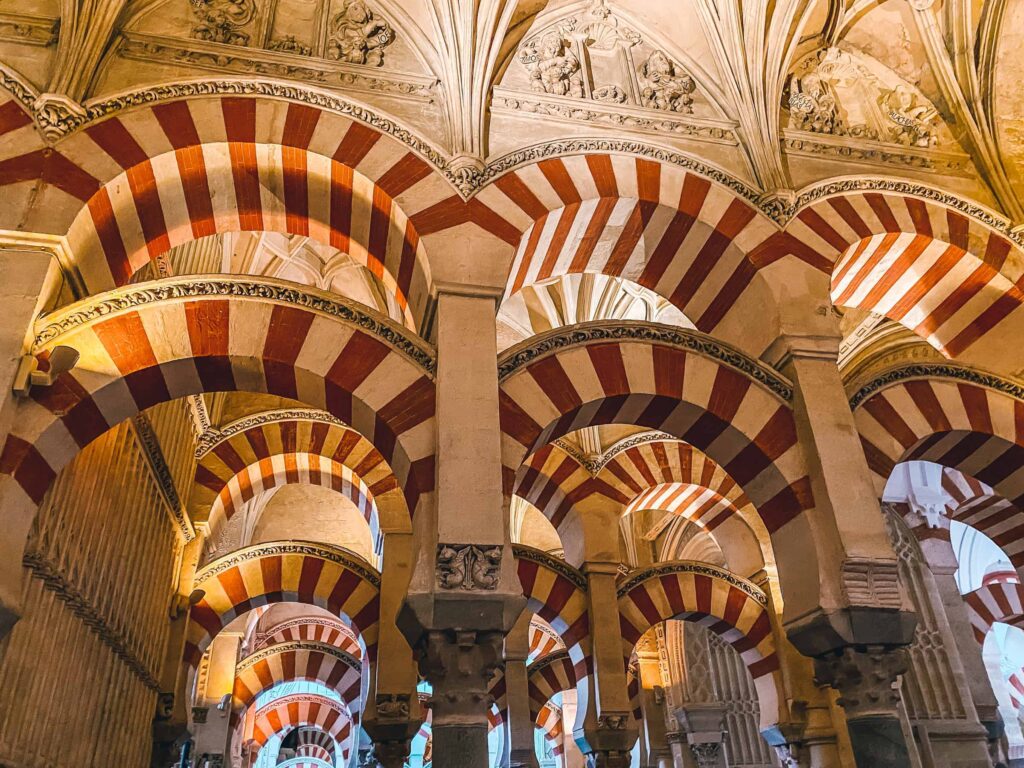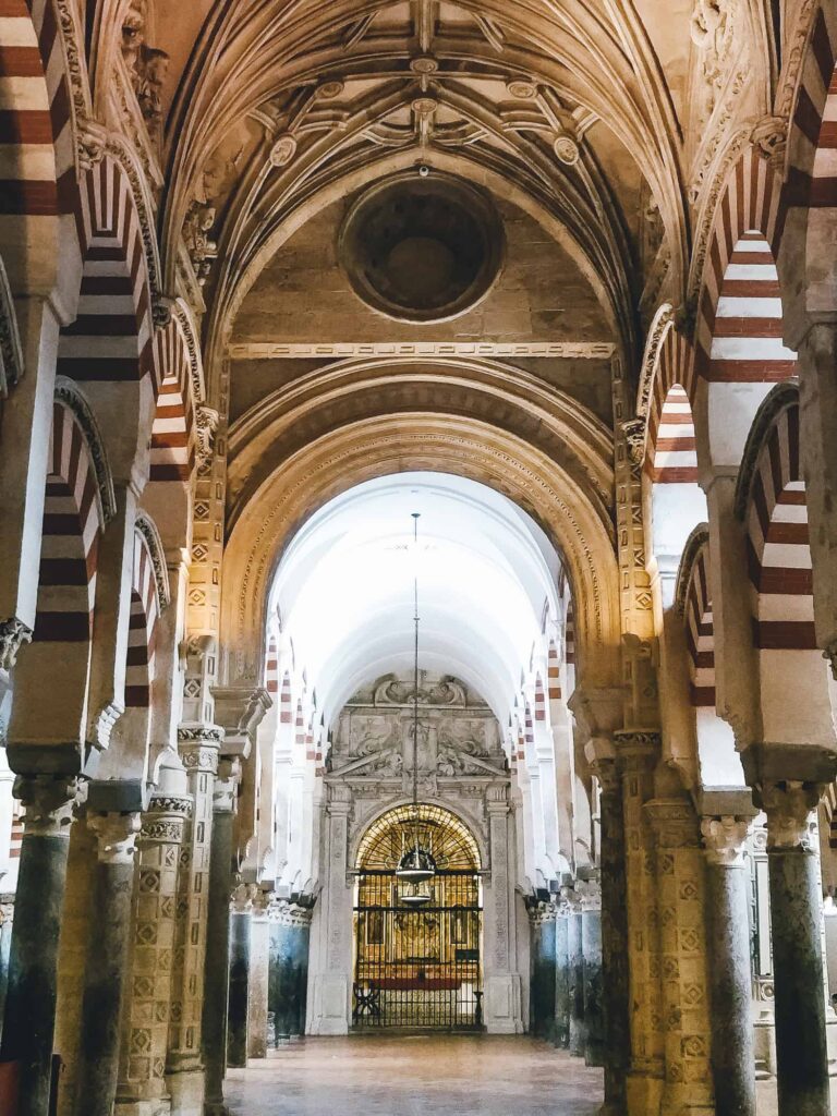 W efekcie budowla to mieszanka architektury islamu, gotyku, baroku, renesansu i stylu mauretańskiego. Olbrzymia sala podparta przez ponad 800 kolumn, to znak rozpoznawczy Mezquita-Catedral de Cordoba. Kolumny, czerwono białe łuki oraz mihraba zdobiona bizantyjską mozaiką i rzeźbionym marmurem, to najważniejsze elementy Wielkiego Meczetu. Katedra to imponujący ołtarz główny, chór oraz szereg kaplic.