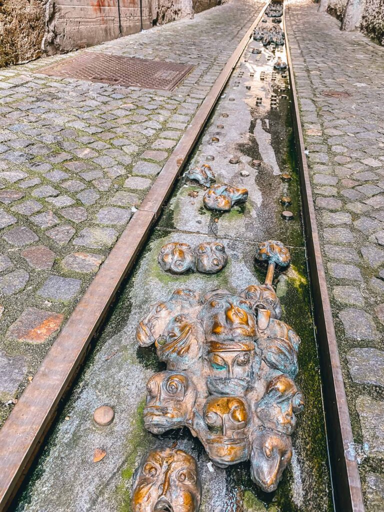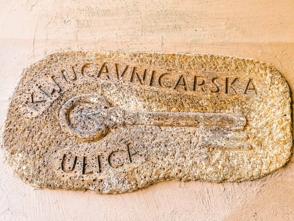 „rzeźba nieczystości” – przez środek wąskiej uliczki (Kljucarnicarska ulica), w bruku, ciągnie się konstrukcja-rzeźba, która pokazuje i przypomina, że kiedyś miasto pozbawione było kanalizacji. Nieczystości wylewano na ulice, a te płynęły sobie ich środkiem. Kuliste, małe rzeźby to… odchody.