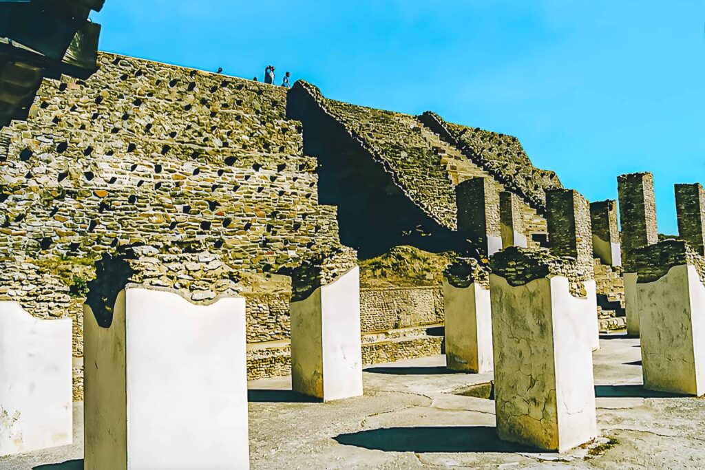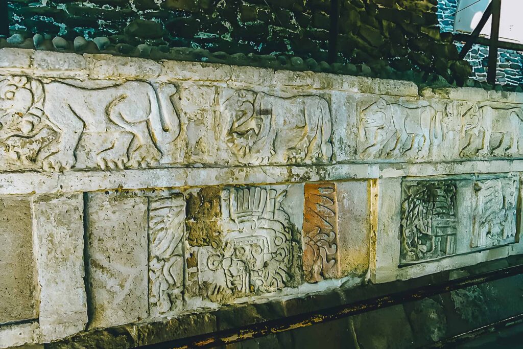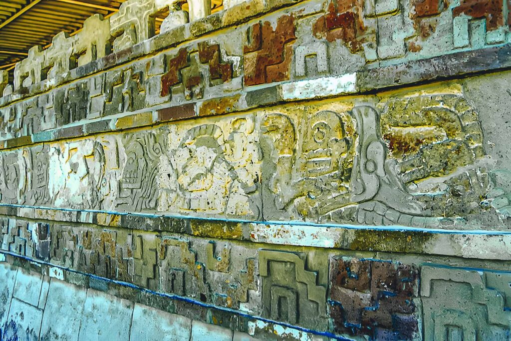Równie charakterystyczna jest Ściana Węża (Coatepantli), ozdobiona reliefami przedstawiającymi węże, orły i jaguary pożerające ludzkie serca. A tuż obok – imponujące boiska do rytualnej gry w pelotę.