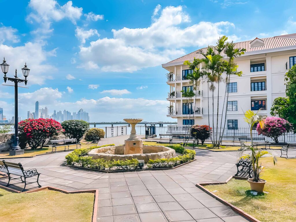 Plaza Herrera to kolejny plac, który warto odwiedzić. My w jego okolicy zdecydowaliśmy się na posiłek w jednej z licznych restauracji. Plazoleta Medio Baluarte to maleńki placyk, z niewielką fontanną, ale to fajny punkt widokowy na wieżowce Panamy. Do metalowej balustrady przyczepiane są pamiątkowe kłódki, zwyczaj w Europie znany, ale w Amerykach rzadko je spotykałam.
