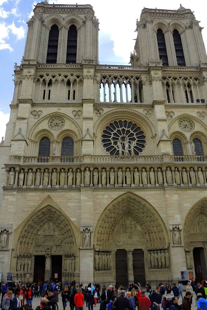Arcydzieło sztuki gotyckiej, rozsławione przez powieści Wiktora Hugo. Katedra powstawała przez ponad 170 lat, a prace ukończono około 1330 roku. Wstęp do środka nie jest płatny. Kolejka oczekujących wiła się po całym placu, ale na wejście czekaliśmy góra 20 minut. Za opłatą można wejść na wieże (69 metrów wysokości) lub do krypt, które mieszczą się pod głównym placem. W wieży południowej wisi słynny dzwon Emmanuel.