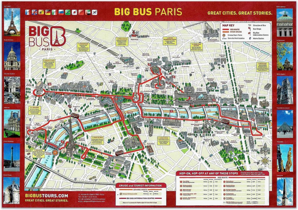 Wybraliśmy linię Big Bus i dwudniowy bilet. Zrezygnowaliśmy z tramwaju wodnego Batobus z obawy o pogodę, choć chętnie wybrałabym wersję łączoną. Widziałam jeszcze innego przewoźnika – L’OpenTour (zielone autobusy), który oferuje aż cztery trasy do wyboru.