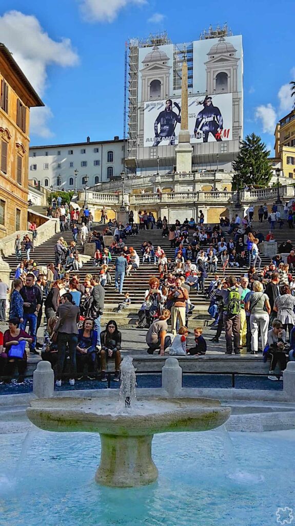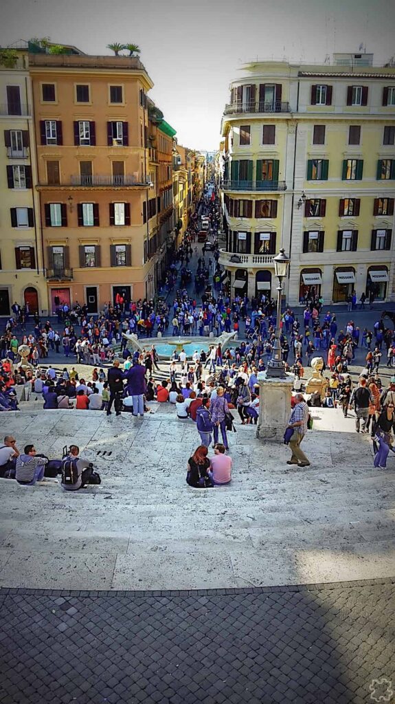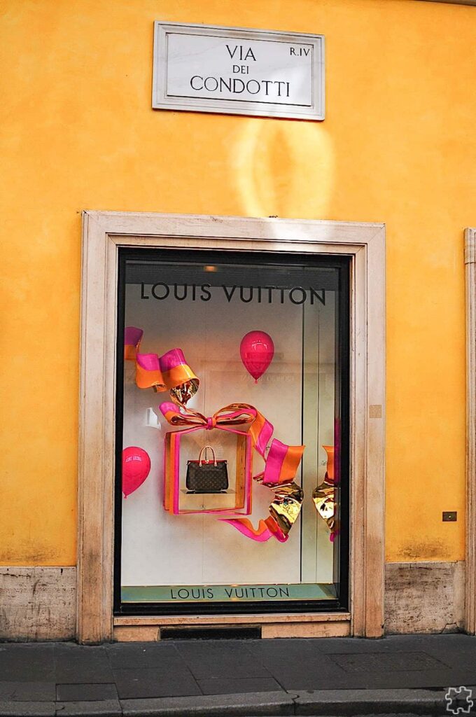 Ulica, którą widać ze szczytu Schodów Hiszpańskich, to Via dei Condotti – centralna ulica zakupowa Rzymu. Serce głównej dzielnicy handlowej miasta i włoskiego świata mody. Znajdziecie tu (i w ulicach odchodzących od Via dei Condotti) wszystkie designerskie sklepy sprzedające ubrania, ale także biżuterię, przedmioty do urządzenia domu czy np. dzieła sztuki.