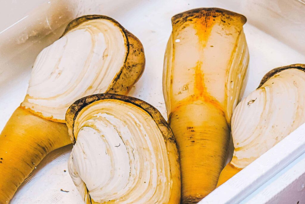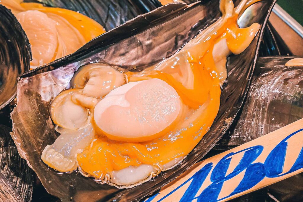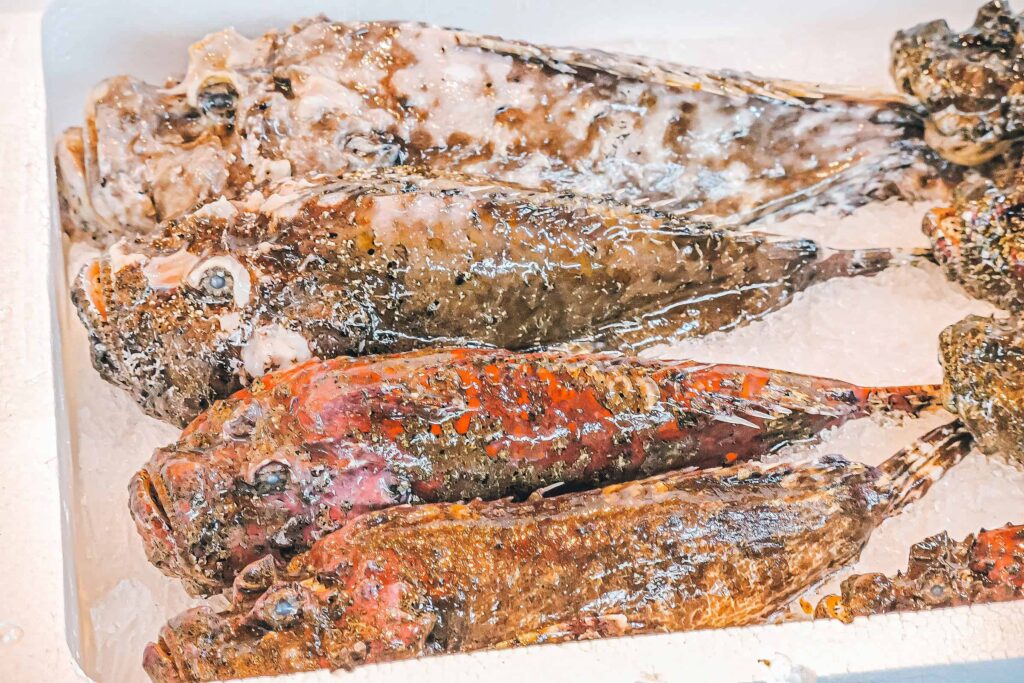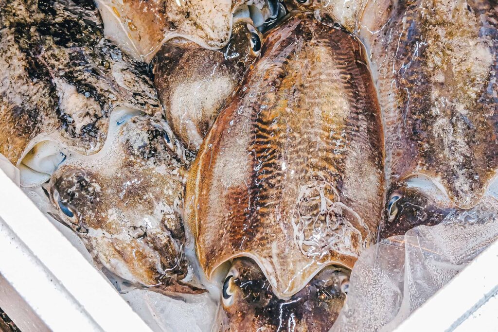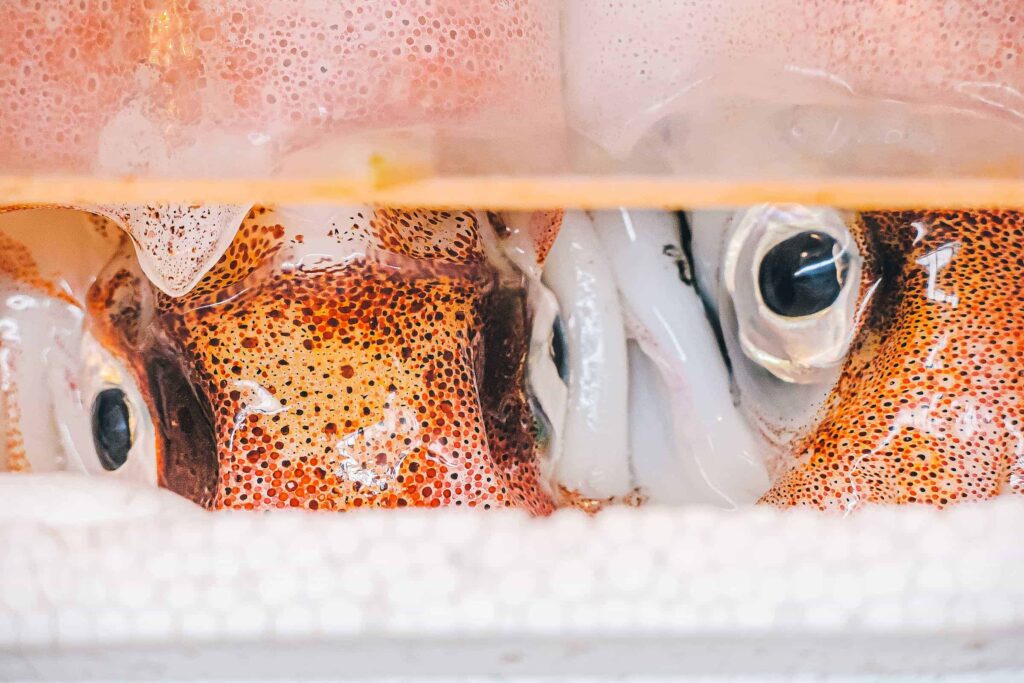 Na przyległym bazarze można zjeść sushi lub coś mniej surowego. W zależności od efektu jaki wywołają zapachy i widoki targu Tsukiji.