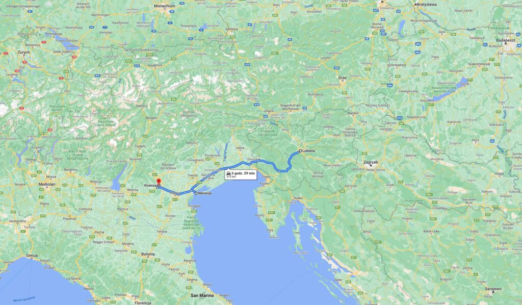 Dzisiaj śniadanie jedliśmy w Lublanie, obiad w Wenecji, a kolację w Vicenzy. Przejechaliśmy trochę ponad 300 km i sporo się nachodziliśmy. To był bardzo fajny dzień.