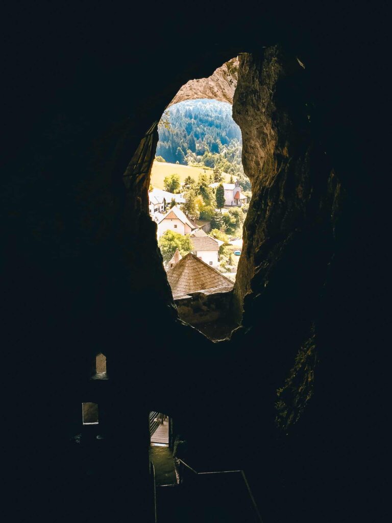 Po opuszczeniu chłodnych i ciemnych wnętrz Jaskini Postojna, wsiedliśmy do samochodu, aby w okolicy zobaczyć jeszcze jedną atrakcję. W połowie 123-metrowego klifu, 800 lat temu, wzniesiono zamek. Budowla wygląda jak przyklejona do skał. To zamek jaskiniowy, największa taka konstrukcja na świecie. Forteca znajduje się także na liście dziesięciu najbardziej fascynujących zamków na świecie.