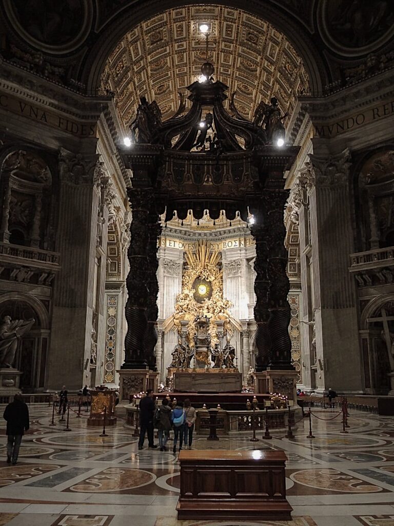 • drewniany baldachim, który wznosi się na nad grobem św. Piotra. Baldacchio to dzieło Berniniego,