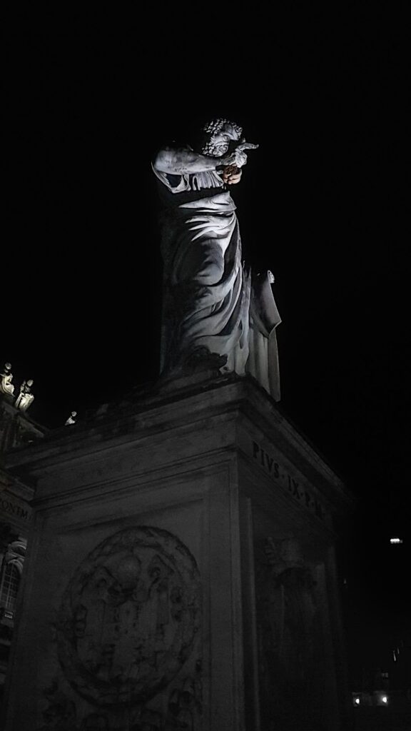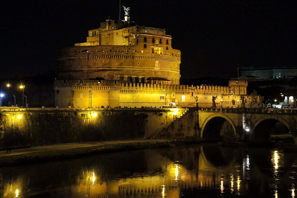Gdy opuszczaliśmy Bazylikę św. Piotra było już ciemno. Zamek Świętego Anioła, który wznosi się nad rzeką Tyber obejrzymy za dnia.