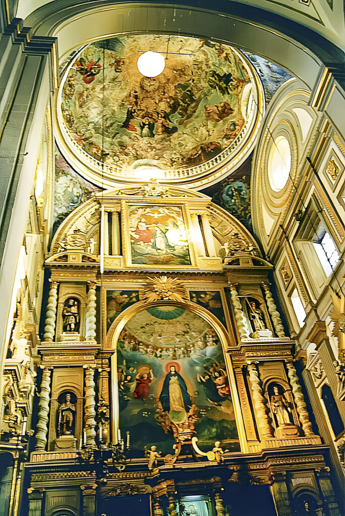 Kościół i kolegium są kolejnym świetnym przykładem churrigueryzmu – bogactwo złoconych detali, rzeźbione ornamenty i fantazyjne formy sprawiają, że wchodząc do środka, czujesz się otoczony prawdziwym spektaklem barokowego przepychu.